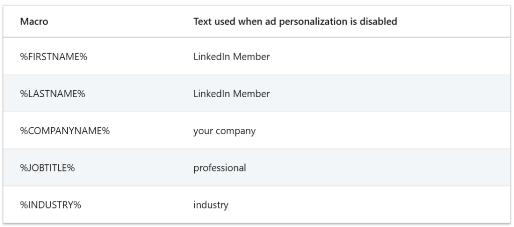If you’re new, here’s what you need to know about LinkedIn macros to personalize ad copy for sponsored content ads.